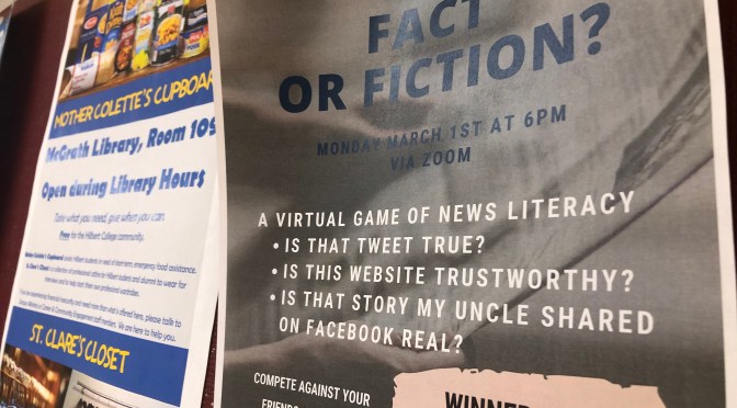 Melissa Laidman of the McGrath Library will be hosting Fact or Fiction, a virtual game of news literacy hosted through Zoom, on March 1st, at 6 p.m.